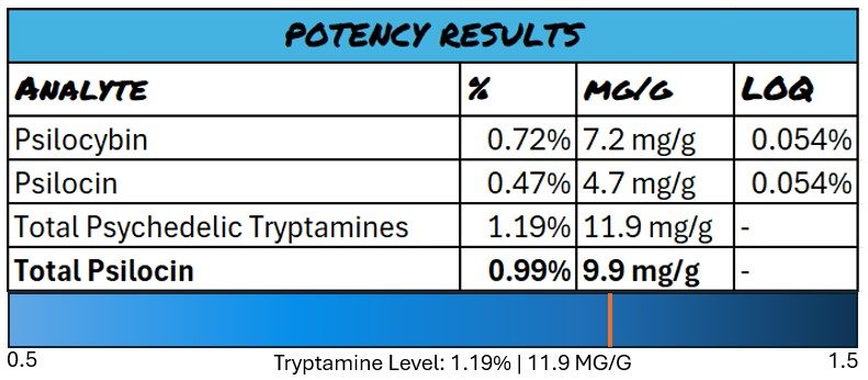 Scientifically known as a Psilocybe Ochraceocentrata, this strain has many traits similar to Psilocybe cubensis. However, genetic testing has confirmed that it is a unique species of its own. The chemical compounds and morphological traits are described as being shared with both Psilocybe Cubensis and Panaeolus Cyanescens mushrooms. With psychoactive content 2-3 times stronger than many other strains, Blaux Meanies are renowned for their potent effects and vibrant hues.